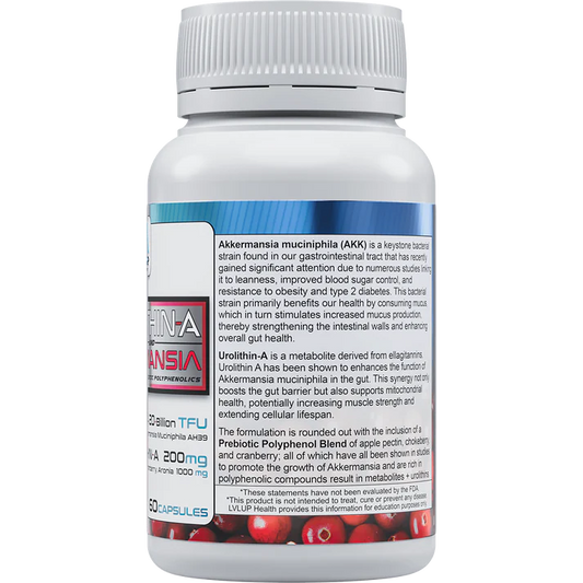 Urolithin A + Akkermansia | LVLUP HealthRegular price $95.00 USDRegular priceUnit price per$99.99 USDSale price $95.00 USDSale