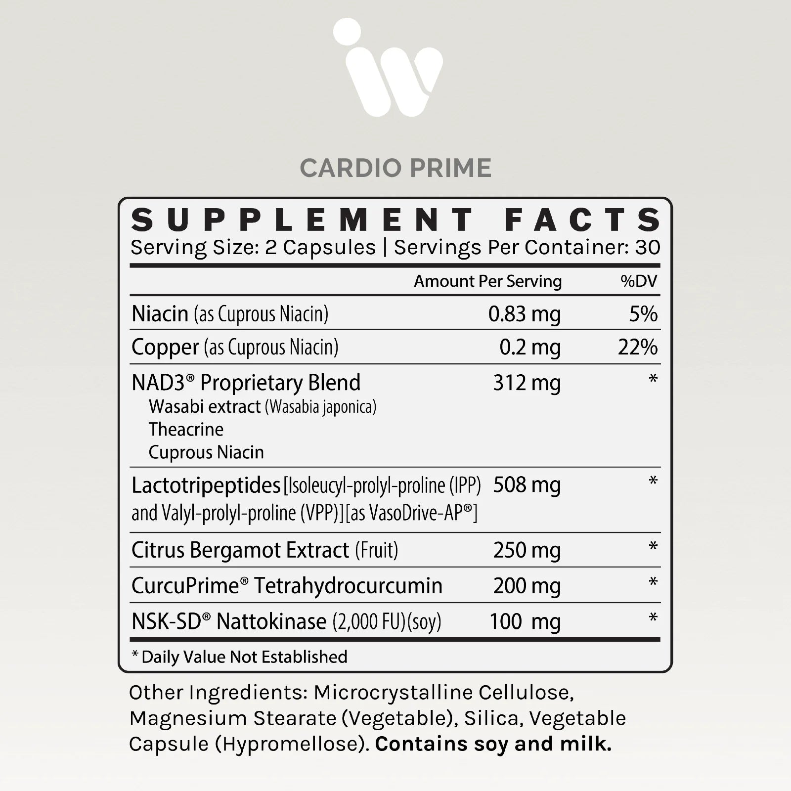 A: Cardio Prime+ combines clinically proven ingredients like NAD3®, NSK-SD®, and CurcuPrime® for a comprehensive, multi-faceted approach to cardiovascular and metabolic wellness.