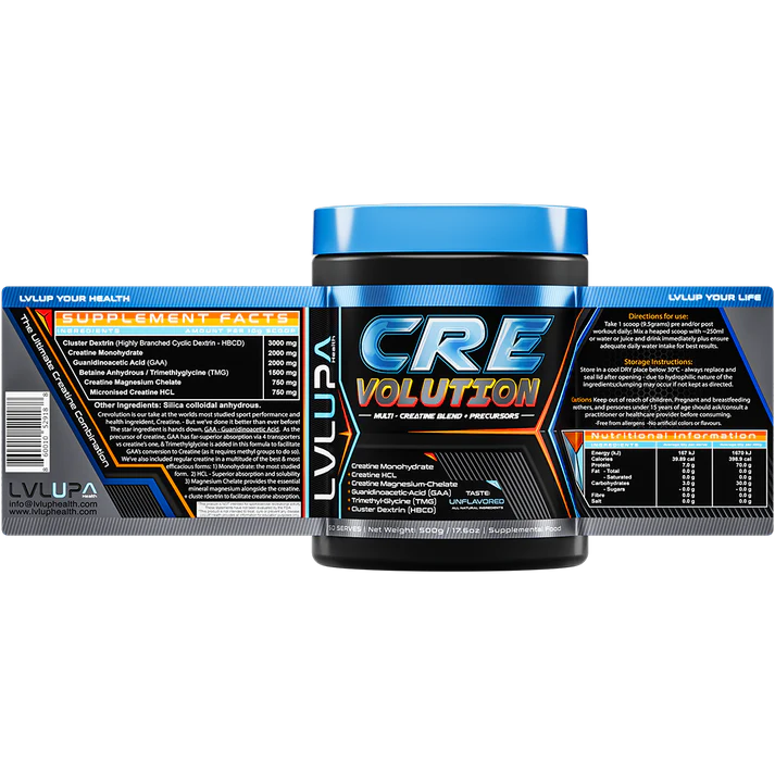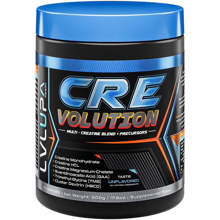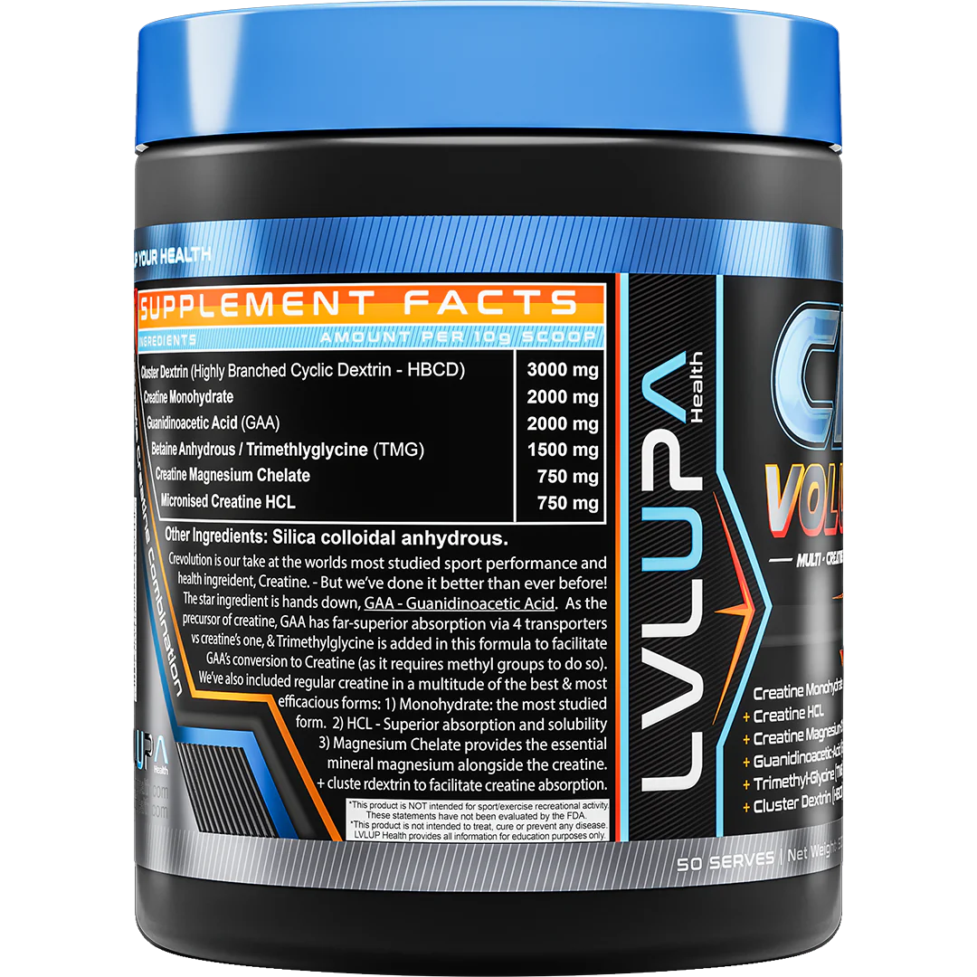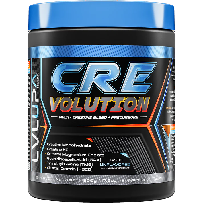 Welcome to the CREvolution! LVLUP Health CRE-Volution takes creatine supplementation to new heights by combining the most studied form, Creatine Monohydrate, with two other highly effective forms: Creatine HCl and Creatine Magnesium-Chelate. But we didn’t stop there—this game-changing formula is designed for superior absorption, performance, and results.