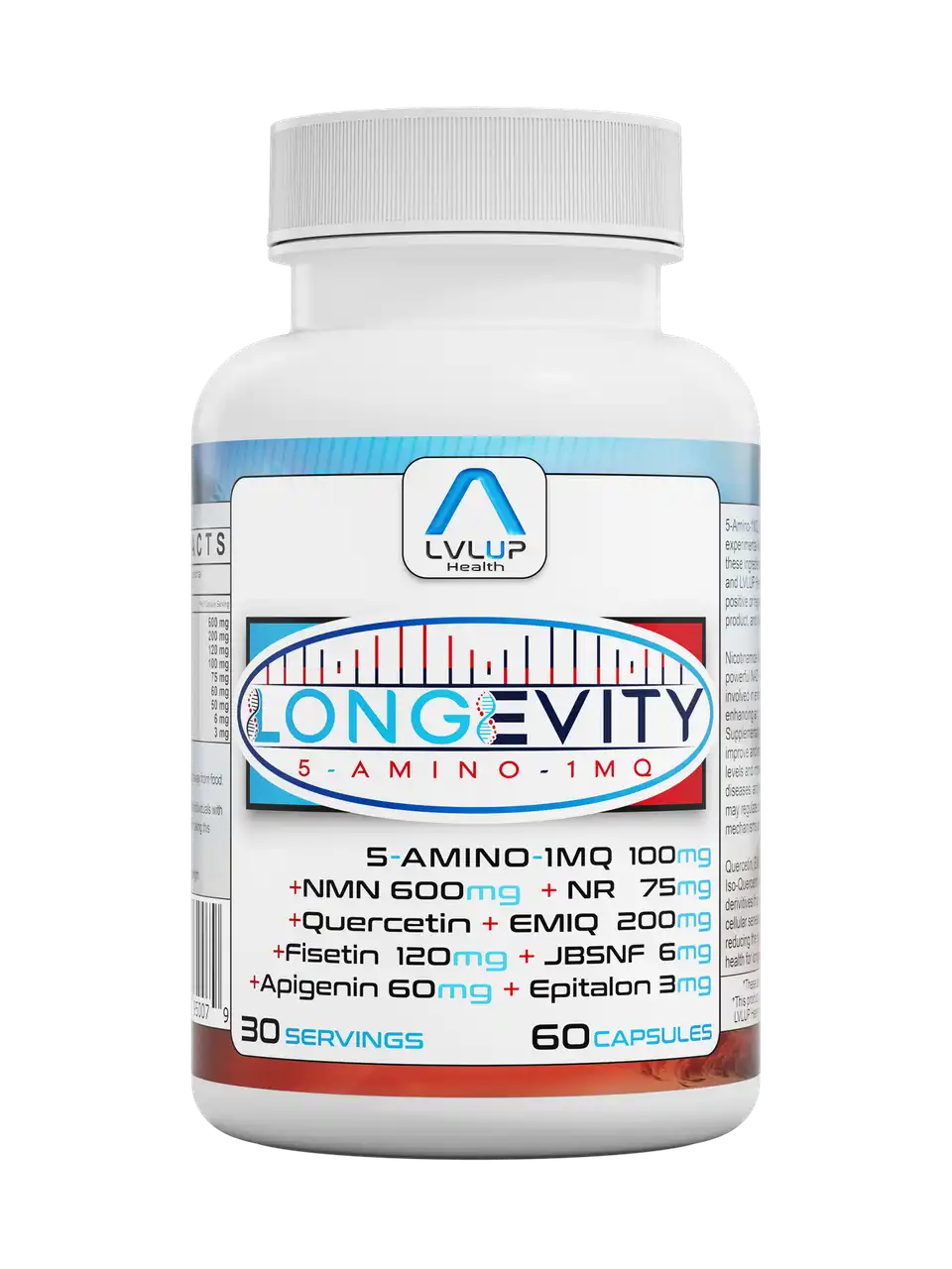 Longevity 5-Amino 1MQ is a cutting-edge formulation designed to support NAD+ optimization, mitochondrial function, and long-term cellular health. It blends scientifically studied peptides and potent natural compounds to combat aging at the cellular level.