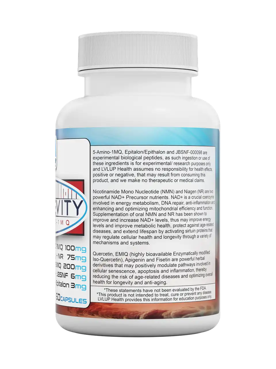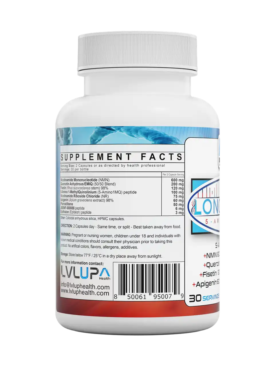 Longevity 5-Amino 1MQ is ideal for anyone looking to improve cellular energy, slow aging, and support optimal mitochondrial and metabolic health from the inside out.
